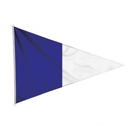 Ce drapeau de forme triangulaire est bicolore bleu et blanc.