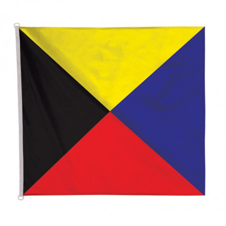 Le pavillon zulu, dernier dans la liste alphabétique des pavillons du code international des signaux maritimes, est résolument le plus coloré. 4 triangles de tailles identiques sont de couleurs noire, jaune, rouge et bleue.