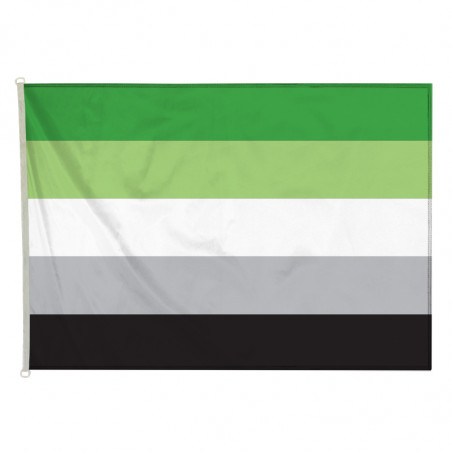 Le drapeau aromantique est une déclinaison du drapeau agenre. Ils ont tous les 2 vu le jour en 2014 et sont composés des mêmes couleurs : blanc, noir et vert. Le drapeau aromantique peut-être défini comme le symbole des personnes qui ne ressentent pas de sentiments amoureux, quels que soient leur genre et leur orientation sexuelle.Le drapeau aromantique est commercialisé ici en différentes dimensions standards mais aussi sur-mesure. Quelle que soit la taille de drapeau choisie, il est confectionné avec un ourlet sur le pourtour et une sangle de renfort avec anneaux sur le côté gauche.