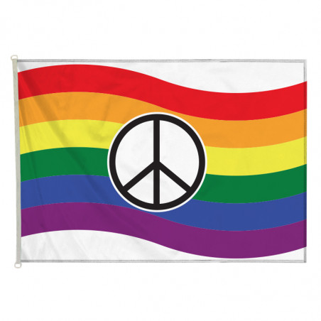 Le drapeau Peace and Love est proposé en différentes tailles. Il peut être agité à la main, soit fixé sur un support qui tiendra lieu de hampe ou être hissé en haut d’un mât à l’aide d’une drisse.