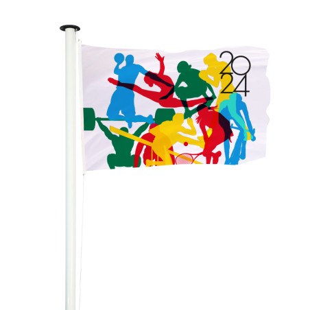 Le drapeau des épreuves olympiques est le support de communication pour fêter les Jeux Olympiques. Imprimé aux couleurs des sports olympiques, le drapeau est fabriqué dans nos ateliers. Un choix de visuels et de dimensions sont disponibles pour s'adapter à tous vos besoins en communication. Le visuel est une création MACAP mais il n'est pas la charte graphique officielle des JO ou de Paris 2024 qui est réglementée par un droit de reproduction et d'utilisation (copyright).
