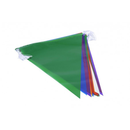 La guirlande plastique pvc est composée de 20 fanions (35 x 25 cm) disposés sur une longueur de 10 mètres. De forme triangulaire, la guirlande multicolore offre une décoration et dynamise vos animations. La guirlande multicolore est vendue avec une quantité minimum de 10 exemplaires.