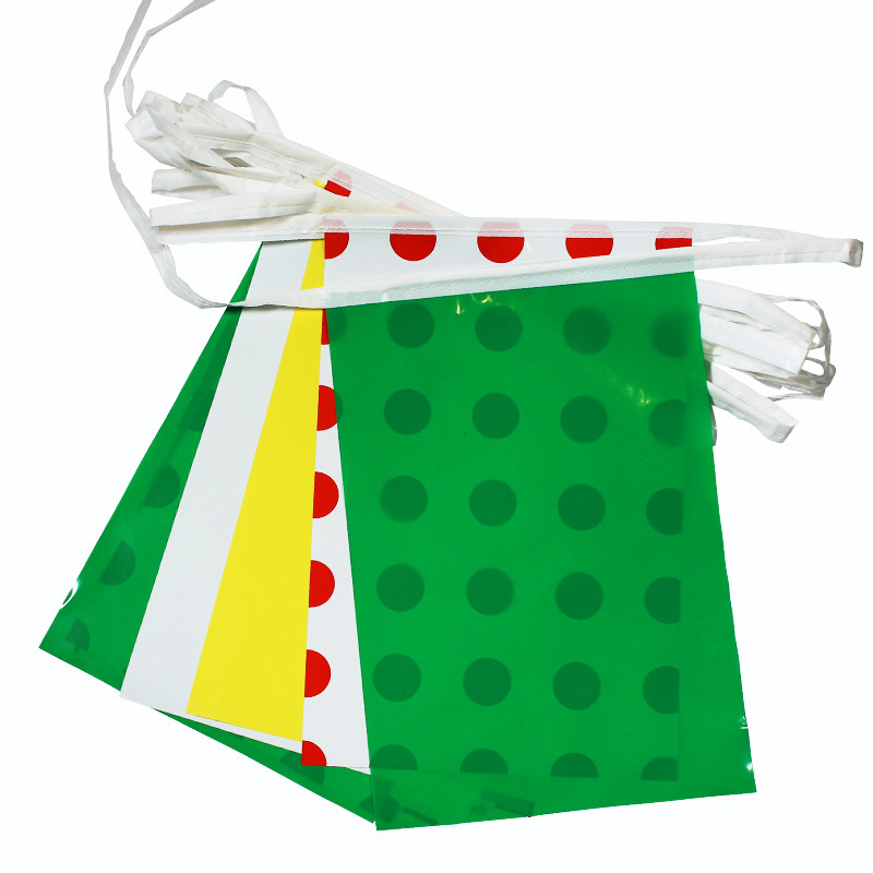 Composée de 20 fanions rectangulaires ou triangulaires au format 30 x 20 cm, imprimés en recto verso, cette guirlande publicitaire assure une excellente visibilité. Solide, légère et économique, elle est parfaitement adaptée à une utilisation en extérieur comme en intérieur. Disponible en longueur de 10 mètres, elle est proposée à partir de 50 exemplaires minimum.