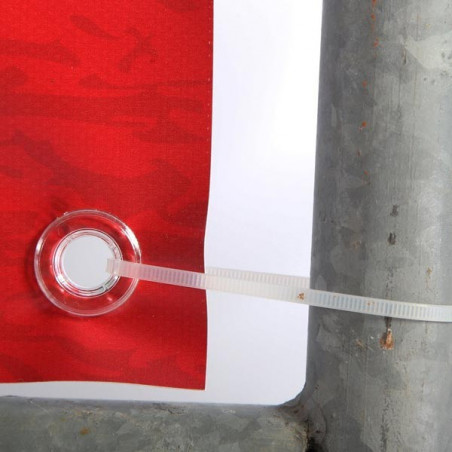 Déroulez, c’est posé ! L’habillage publicitaire de barrière se positionne aisément en quelques instants grâce aux colliers plastiques.