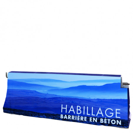 Macap a mis au point ce produit innovant et pratique qui vous permet "d'emballer" votre barrière en béton (type GBA-DBA) sur le modèle d'une chaussette qui vient ainsi la recouvrir. Vous pouvez choisir que l'habillage de barrière soit ouvert sur les côtés pour permettre de recouvrir des barrières qui seraient fixées entre elles.