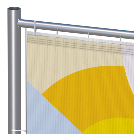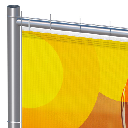 La bâche publicitaire est fabriquée dans nos ateliers au format standard des grilles de la marque Heras et également d'autres habillages avec des banderoles sur mesure pour les autres grillages de chantiers. Spécialement conçues pour l'extérieur, les banderoles pour barrière mobile sont produites dans une large gamme de matière textile de haute résistance. Confectionnée avec une bande de fixation universelle, appelée ruflette, elle garantit une pose parfaite et rapide avec une fixations avec des rilsans en plastique fournis.