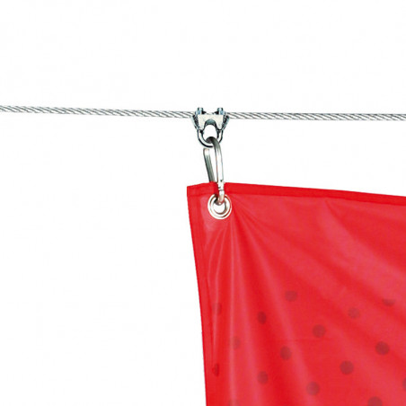 Le kakémono publicitaire suspendu est très facile à installer. Il s’accroche à l’aide d’une drisse, d’un câble… que l’on passe à l’intérieur des oeillets positionnés en partie haute du kakemono pour en garantir son maintien.