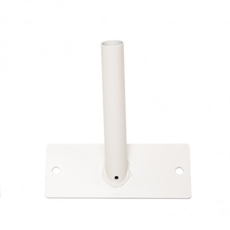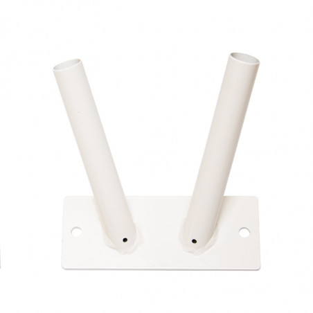 La fixation est fabriquée en acier laqué blanc. Un traitement haute résistance permet de protéger l’acier et sa peinture blanche malgré une exposition prolongée en extérieur.