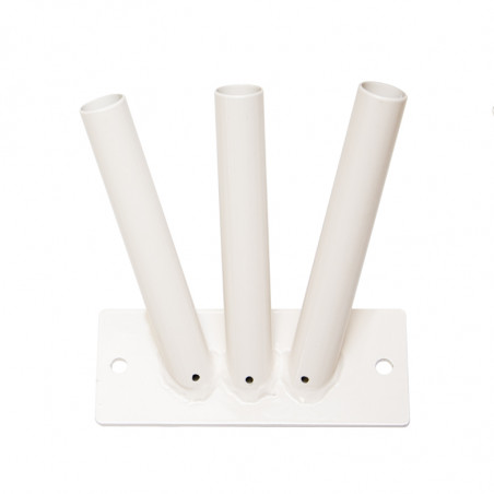 Le diamètre extérieur du tube de la fixation est de 30 mm pour accueillir des mâts d’un diamètre intérieur de 31 mm. Pour ce modèle, le mât vient recouvrir la fixation contrairement à d’autres fixations qui sont des étuis dans lesquels on insère un mât.