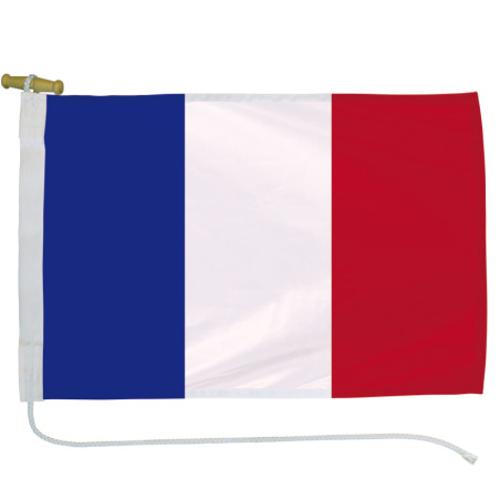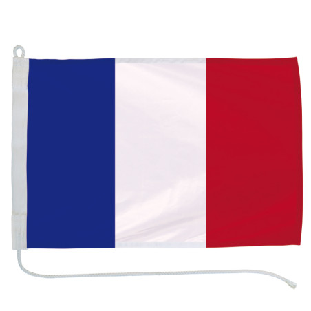 Le pavillon France pour bateau est un drapeau tricolore national français qui est confectionné avec des systèmes de fixations adaptées au milieu maritime : anneau, boucle, cabillot, drisse. Votre pavillon marine français est fabriqué avec des textiles en polyester et commercialisé dans une large gamme de dimension standard. Chez Macap, imprimeur depuis plus de 55 ans, nous vous proposons des formats sur-mesure avec par exemple de très grands pavillons bateau France, dimension XXL.