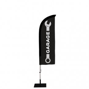 . Un mât d’une hauteur de 2.30 m, une voile personnalisée 160x50 cm dotée d’un fourreau noir, un pied carré robuste en acier noir 40x40 cm (6.5 kg)