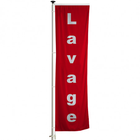 Achetez au meilleur prix votre drapeau LAVAGE pour optimiser la visibilité de votre station de lavage avec le pavillon de couleur Rouge personnalisé "Lavage" (modèle 4). Le drapeau est imprimé en maille polyester dans différents formats verticaux et confectionné avec un fourreau haut blanc pour se glisser dans la potence de votre mât.