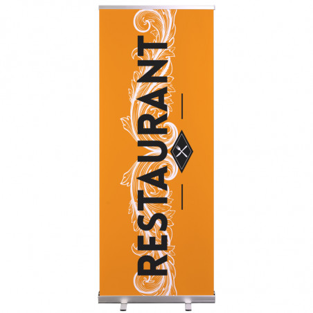 . Un kit complet structure aluminium à enrouleur et visuel 200x80 cm livré dans une housse de transport,