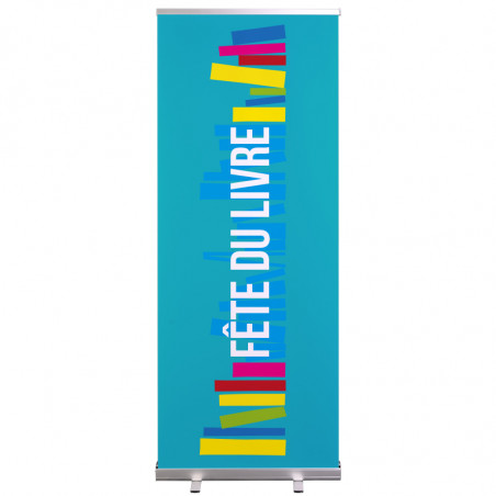. Un kit complet structure aluminium à enrouleur et visuel 200x80 cm livré dans une housse de transport,