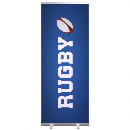 . Un kit complet structure aluminium à enrouleur et visuel 200x80 cm livré dans une housse de transport,