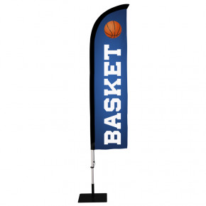 . Un mât d’une hauteur de 2.80 m, une voile personnalisée 220X50 cm dotée d’un fourreau noir, un pied carré robuste en acier noir 40x40 cm (6.5 kg)