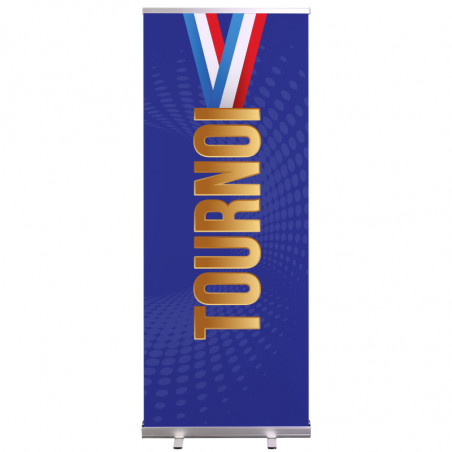 . Un kit complet structure aluminium à enrouleur et visuel 200x80 cm livré dans une housse de transport,
