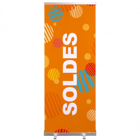 . Un kit complet structure aluminium à enrouleur et visuel 200x80 cm livré dans une housse de transport,