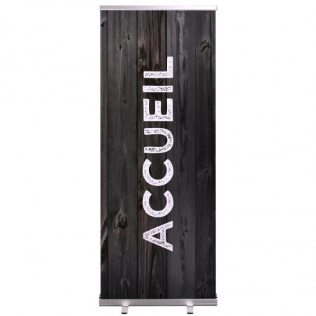 . Un kit complet structure aluminium à enrouleur et visuel 200x80 cm livré dans une housse de transport,
