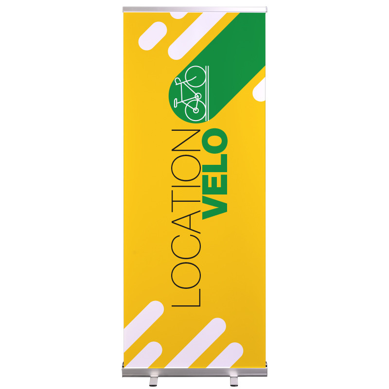 . Un kit complet structure aluminium à enrouleur et visuel 200x80 cm livré dans une housse de transport,