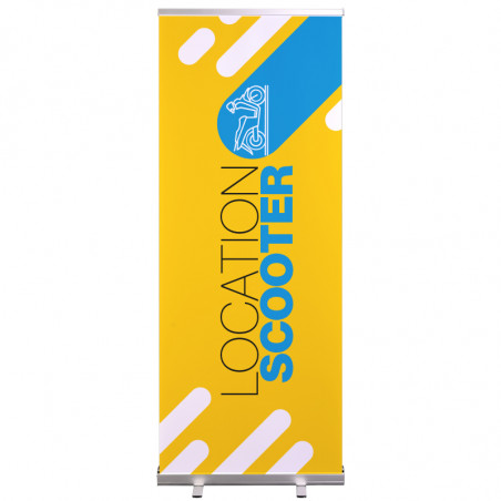 . Un kit complet structure aluminium à enrouleur et visuel 200x80 cm livré dans une housse de transport,