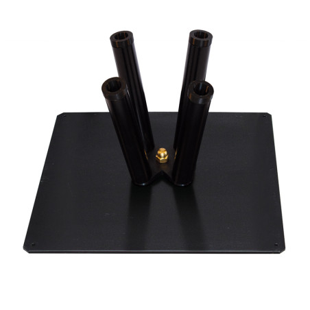 La platine carrée en acier noir mesure 40 x 40 cm, elle est percée aux 4 coins pour permettre sa fixation dans le sol. Son adaptateur lui permet de positionner parfaitement vos drapeaux équipés d'une hampe (Ø 20 mm) pour un usage en intérieur comme en extérieur. Le pied peut recevoir de 1 à 5 drapeaux en fonction de votre sélection, il est spécialement adapté aux formats de drapeaux 100 x 150 cm ou 120 x 180 cm.