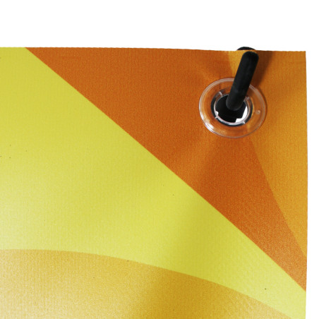 - L’installation de cet outil publicitaire reste très simple. Il suffit de fixer la toile sur les crochets de la structure grâce aux 4 œillets disposés aux 4 extrémités.